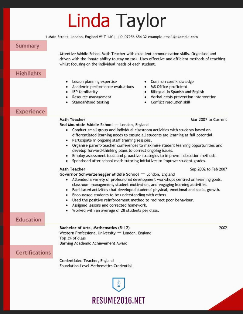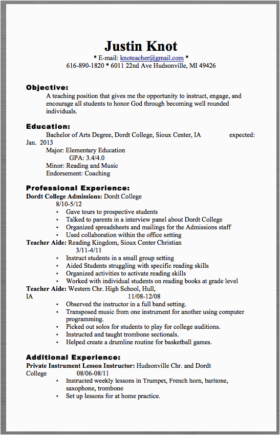 Teacher Resume Examples 2017 Justin Knot E mail