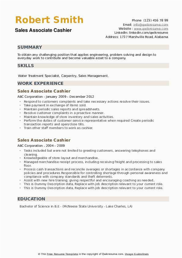 Warning: count(): Parameter must be an array or an object that implements Countable in /var/www/html/naturestudycentre.org/wp-content/themes/silegan-wordpress-theme/inc/themeson.class.php on line 625 Cashiers and Sales associate Sample Resume Cashier Sales associate Resume Samples