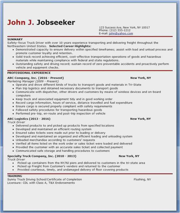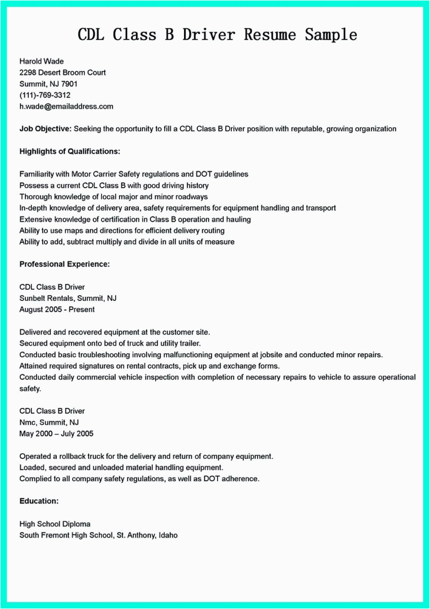 There will be many career books and guides that you can search out at the library or bookstore, which will have at least one cdl class a truck driver resume sample for you to study, oftentimes more.