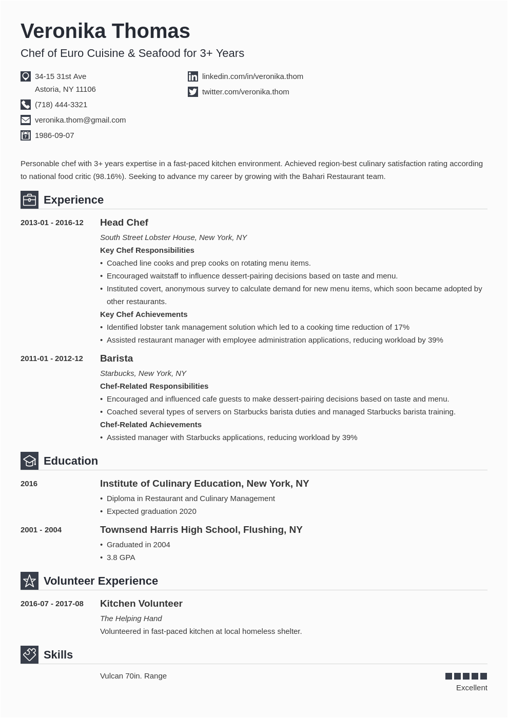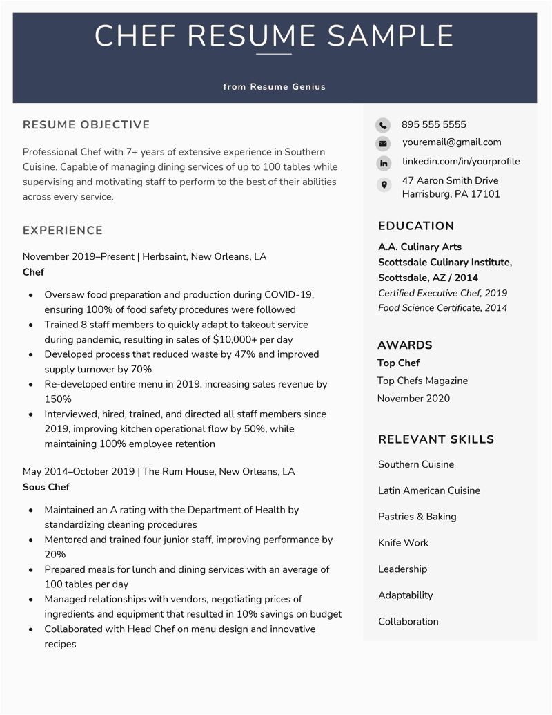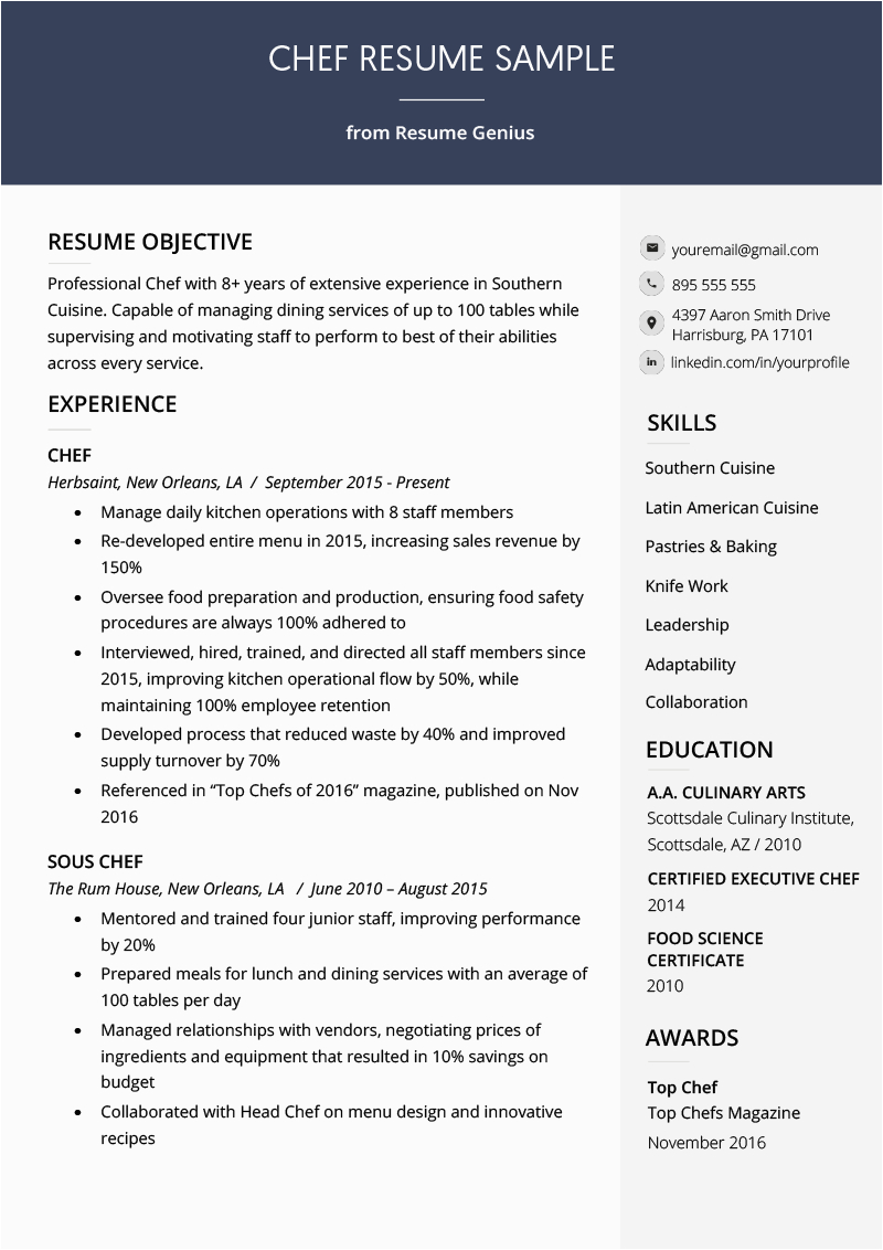 9 photos of the Chef Resume Sample by Resume Genius