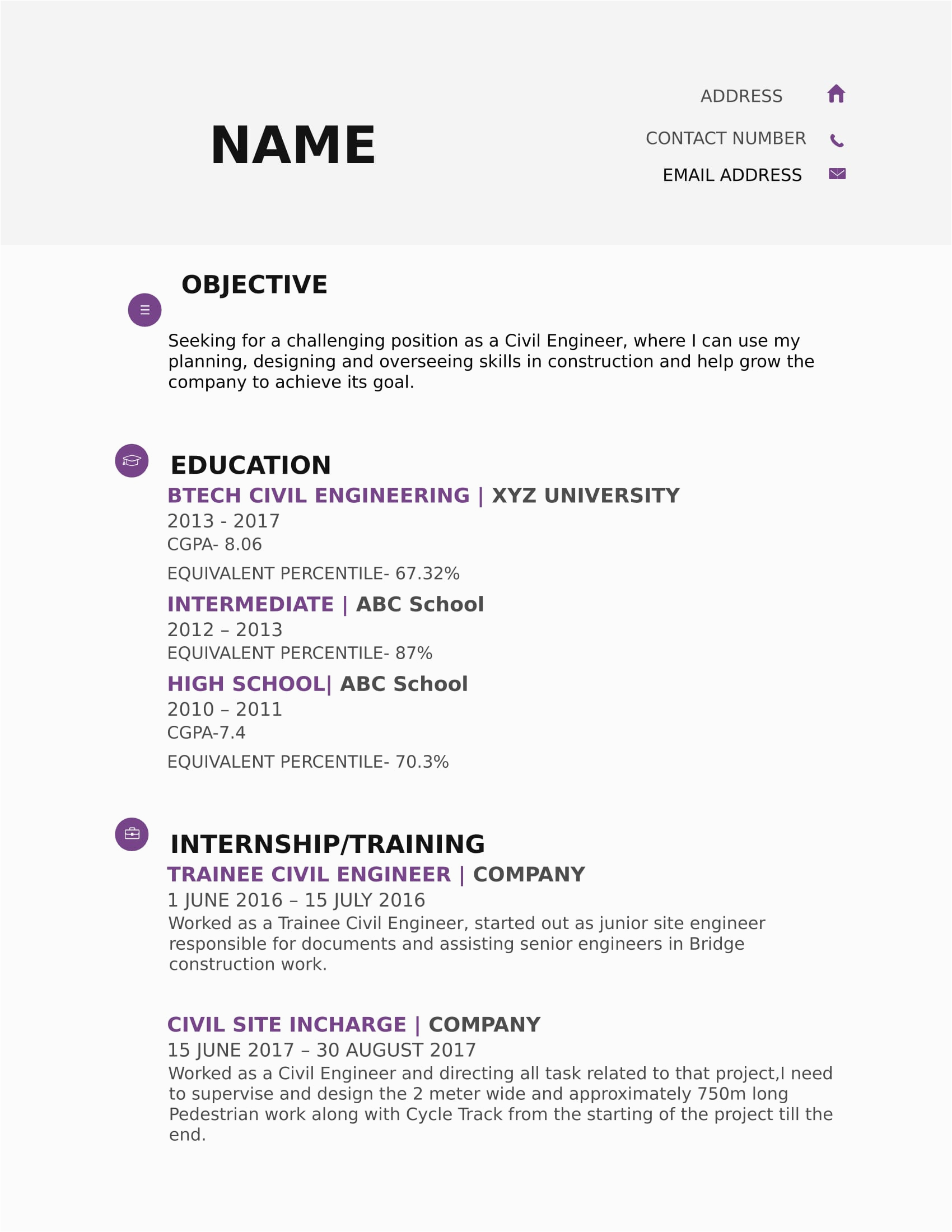And for every website you come across that has a civil engineering sample resume for freshers, you will locate that there are specialized templates for just more or less any type of resume you hope to create. You can locate a civil engineering sample resume for freshers for an entry-level position, and you can locate a template for just virtually any type of job or career you are looking for.