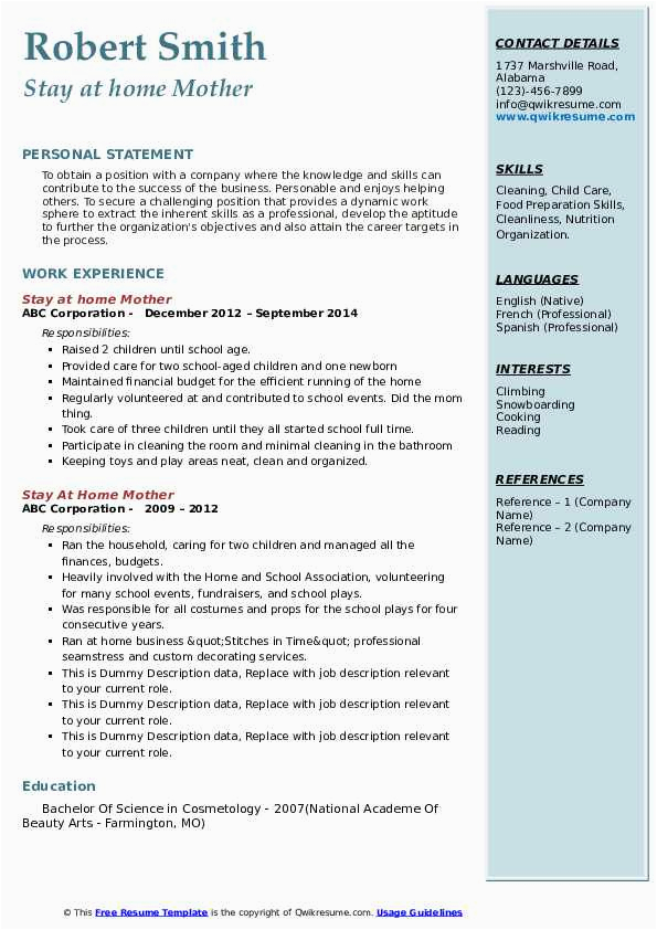 The uses of combination resume template for stay at home mom downloads are as regards limitless! You are bound to find the absolute template that will save you time, provide you a professional appearance, and leave a lasting atmosphere to house the interview.