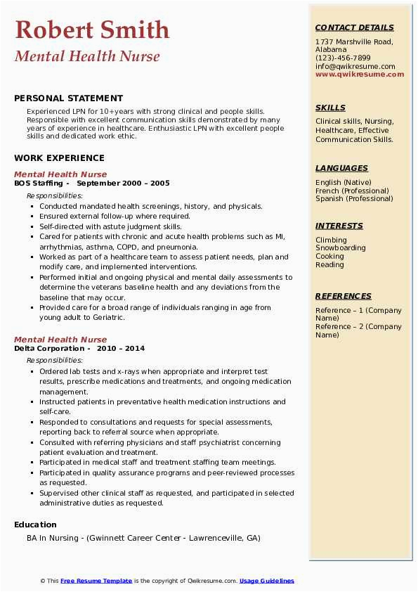 However, these are not your deserted options for locating community mental health nurse resume sample. Your literary or college circles will most assuredly have more than one resume template that you can use, and will be happy to back you. suitably head more than to their Placement Office and you will have a template in no time. After all, it is their job to back you locate employment, and as soon as you are well-to-do and a satisfied and favorably employed former student, it is in addition to a feather in their cap.