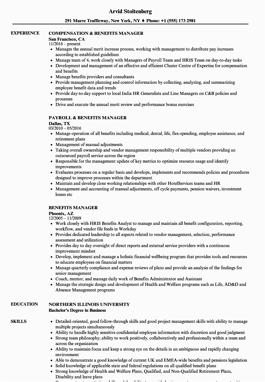 Benefits Manager Resume Example