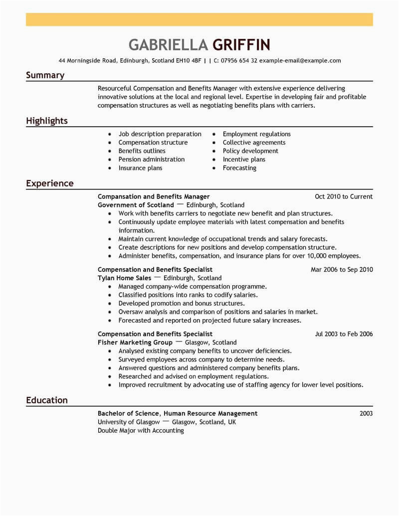 However, these are not your unaccompanied options for locating compensation and benefits manager resume sample. Your school or academic world will most assuredly have more than one resume template that you can use, and will be happy to put up to you. handily head exceeding to their Placement Office and you will have a template in no time. After all, it is their job to help you locate employment, and taking into consideration you are rich and a satisfied and favorably employed former student, it is moreover a feather in their cap.