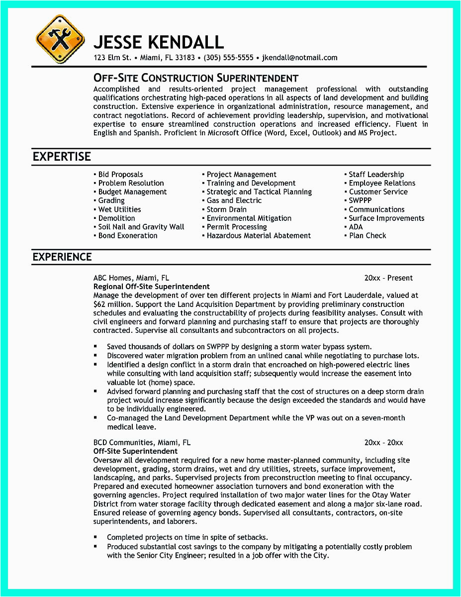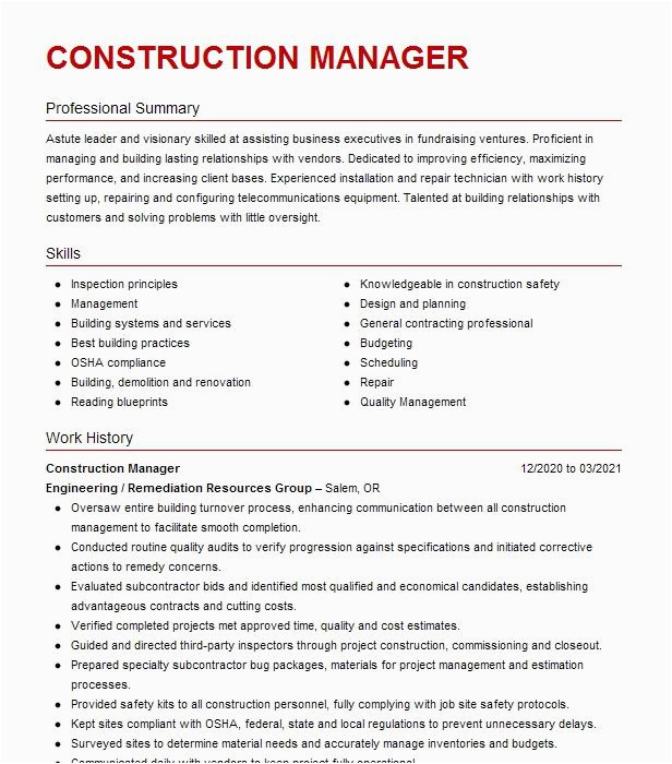 9 photos of the Construction Firm Operational Manager Sample Resume