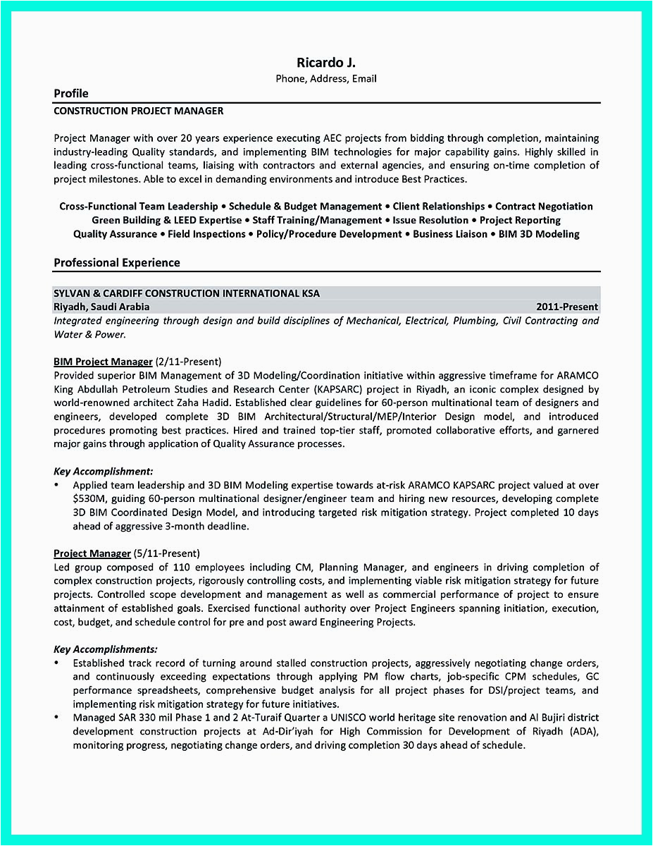 9 photos of the Construction Project Manager Resume Samples Free