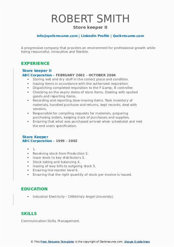 Store Keeper Resume In Word Format BEST RESUME EXAMPLES