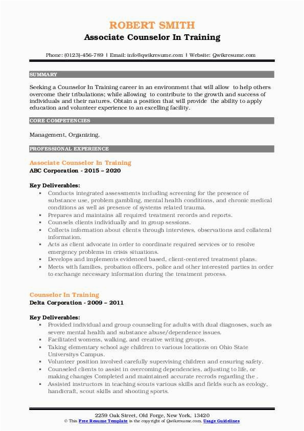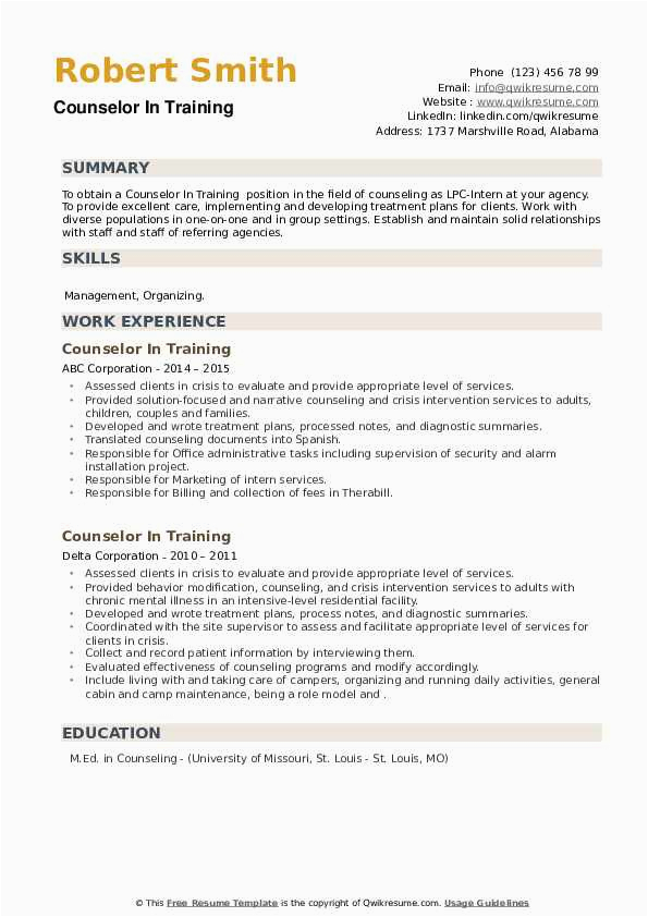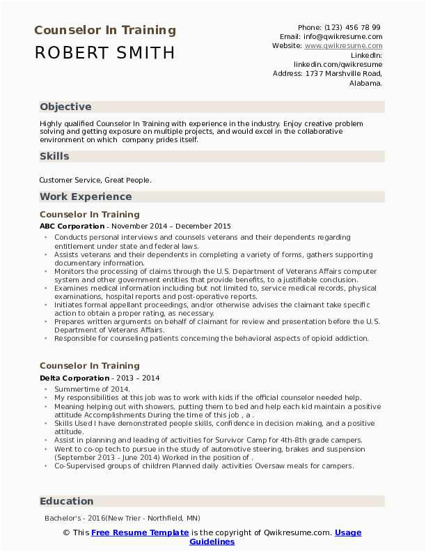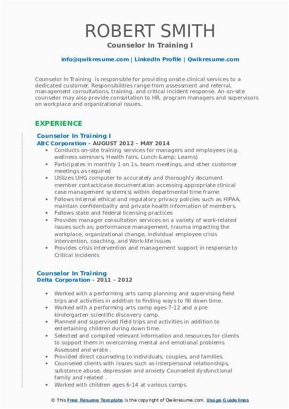 Counselor In Training Sample Change Career Resume Counselor In Training Resumes