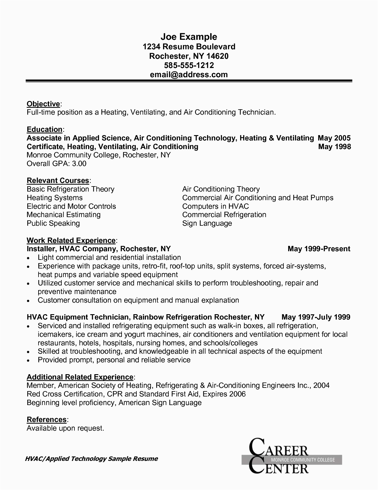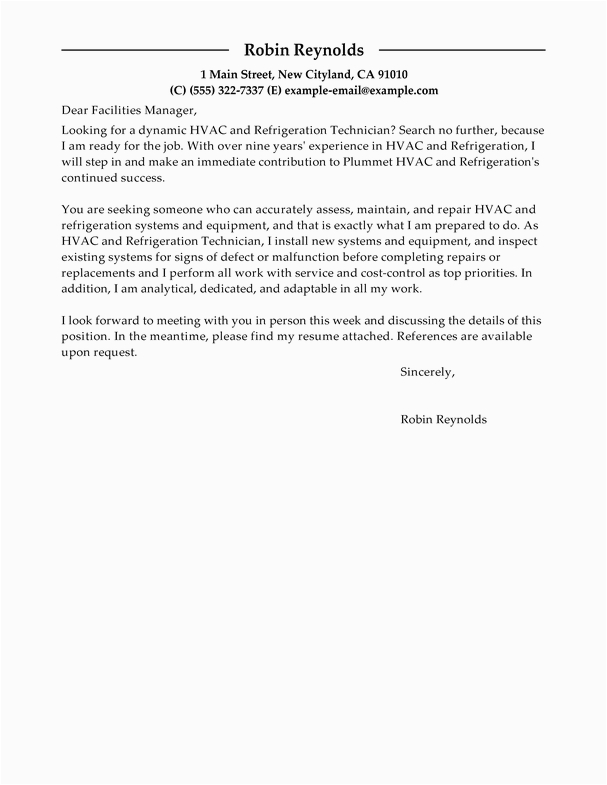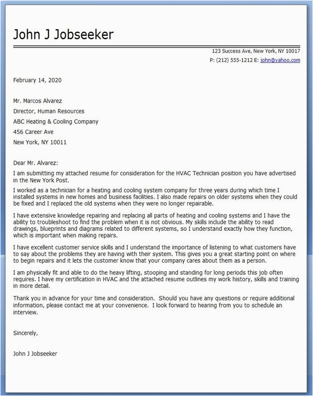 9 photos of the Cover Letter Resume for Hvacr Sample