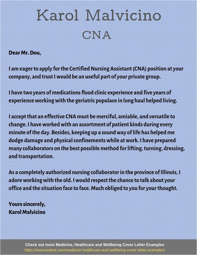 There are consequently many options for you as you search for the perfect cover letter sample for cna resume, and considering some hard feat and perseverance upon your part, you will locate yourself taking into consideration a first-class resume in no time, and hopefully, a first-class employer, as well!. For more assistance on resumes or for a cover letter sample for cna resume checkout this recommended websites.