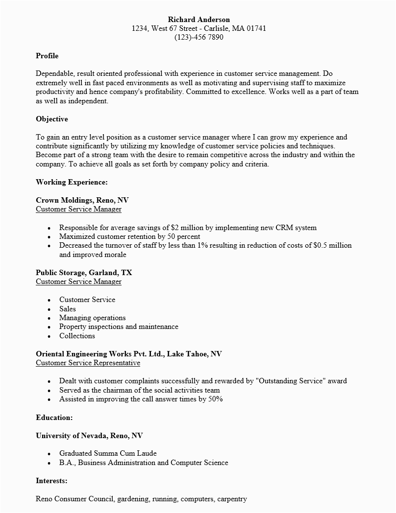 Back To Customer Service Manager Resume Sample Templates