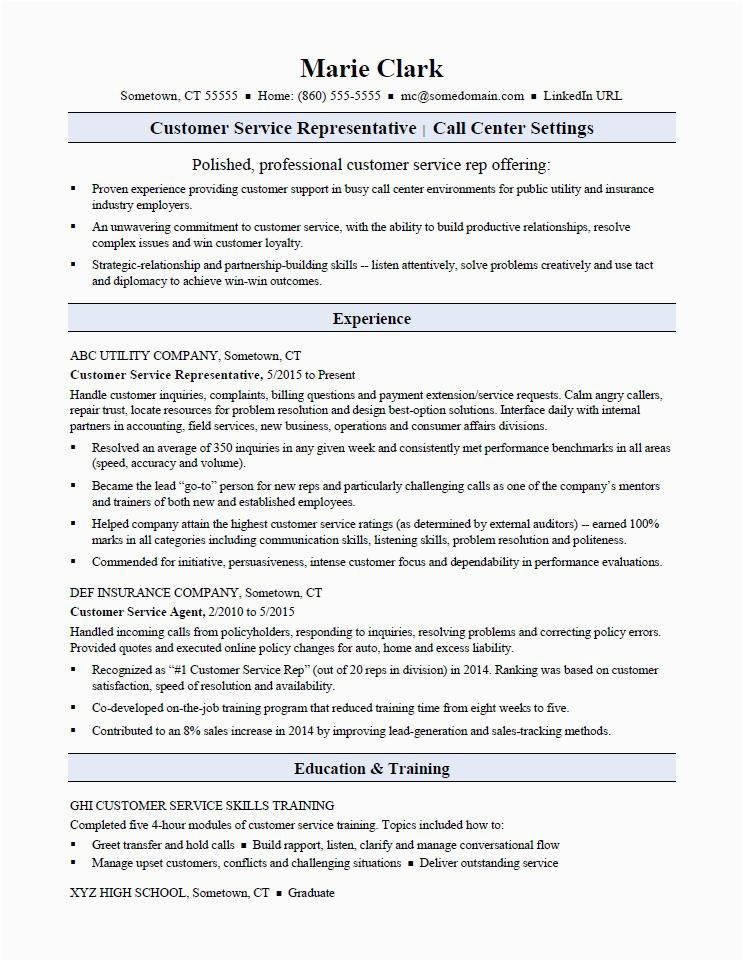 Customer Service Representative Resume