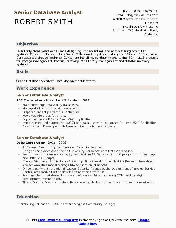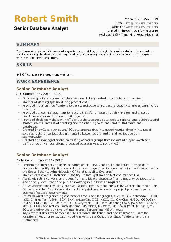 Data Analyst for Library Resume Sample Senior Database Analyst Resume Samples and all other pictures, designs or photos on our website are copyright of their respective owners. we get our pictures from another websites, search engines and other sources to use as an inspiration for you. please contact us if you think we are infringing copyright of your pictures using contact page. we will be very happy to help you.