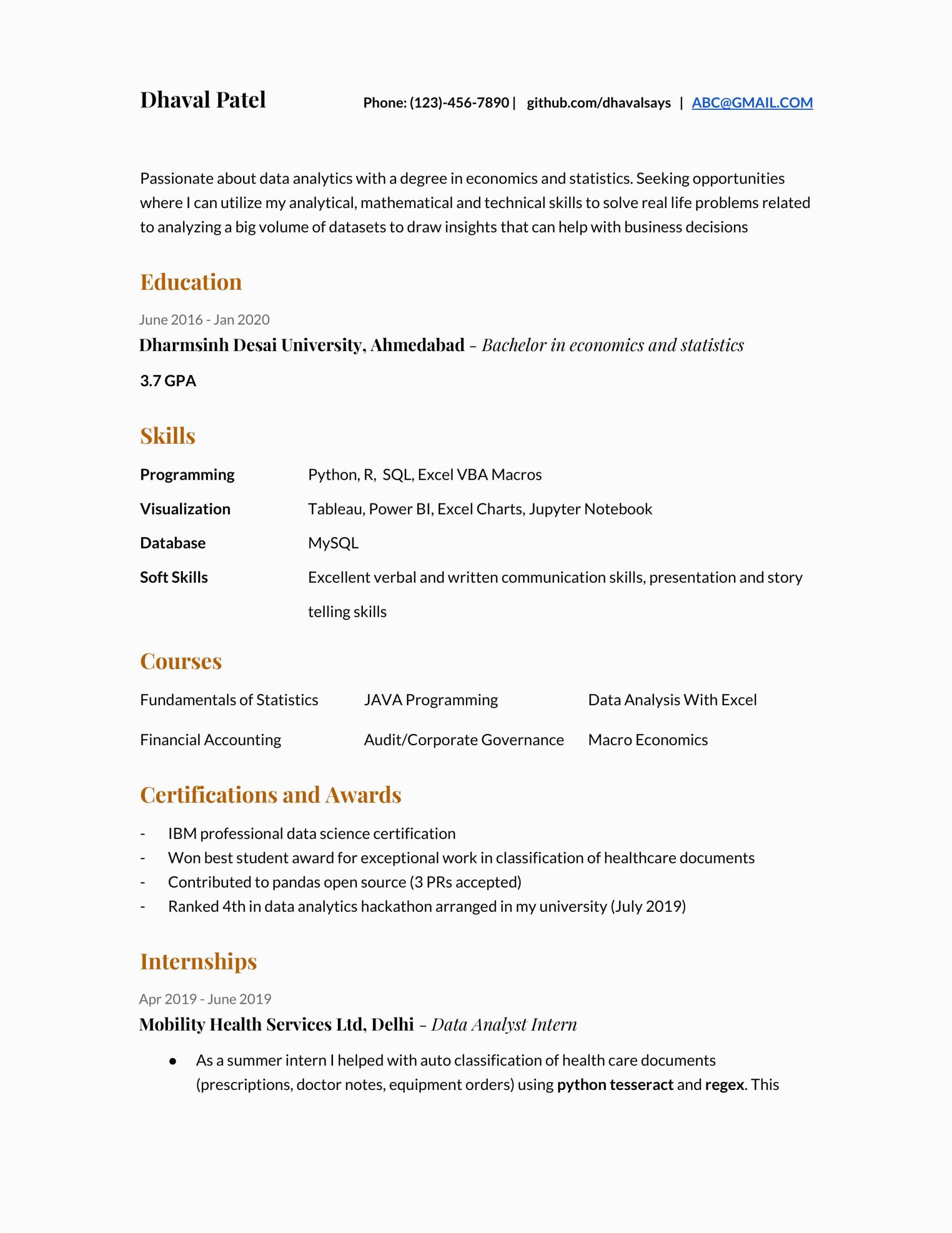 in the manner of you are searching for the perfect job, you will of course desire to put your best foot speak to taking into account an impressive and well-formatted resume. One exaggeration of assuring that you have such a resume is to download a data analyst sample resume for freshers. These templates can allow you gone the truthful resume you are looking for or suitably use them as a lead to make your own.