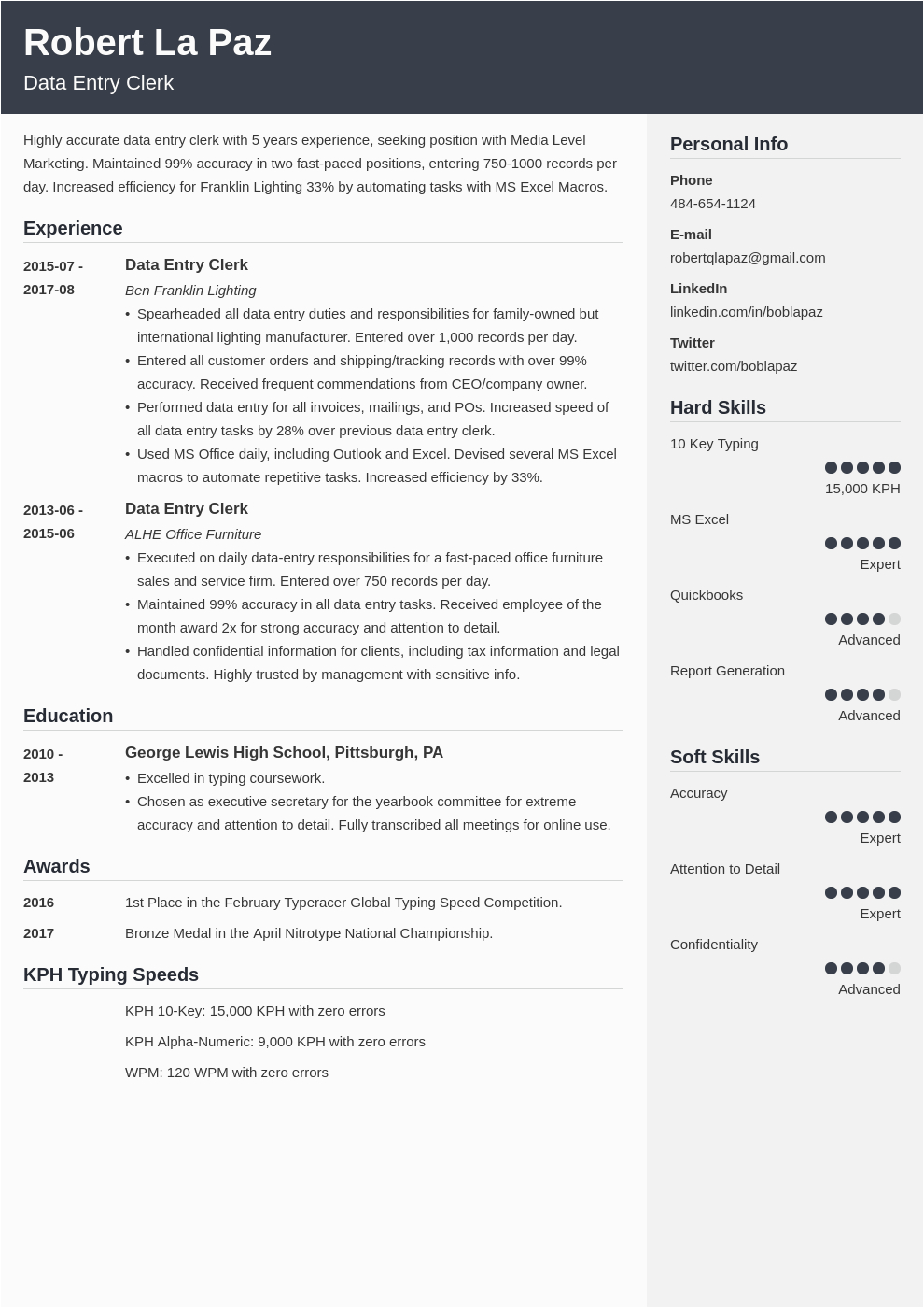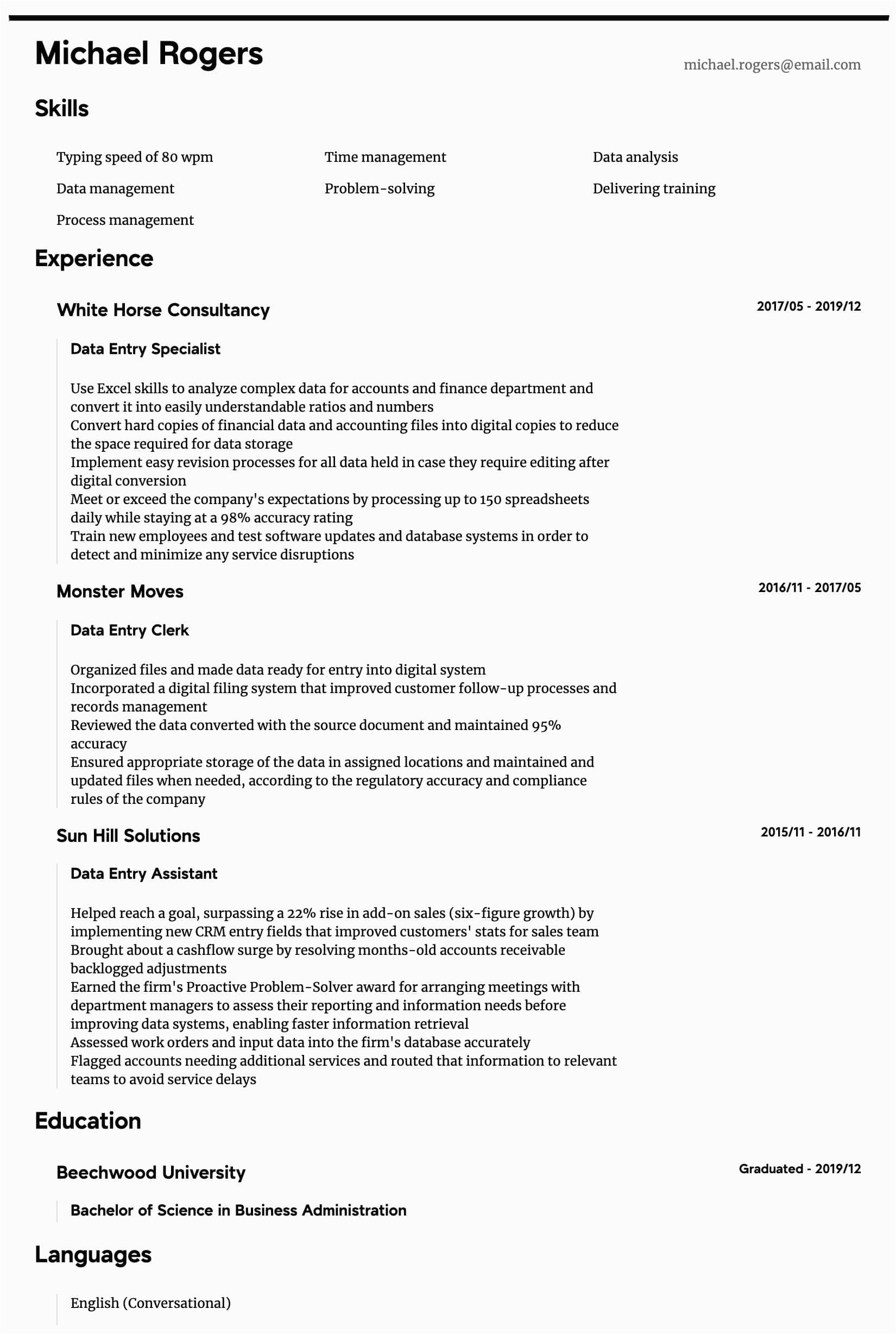 Data Entry Resume Sample with Experience Data Entry Resume Sample 20 Tips On Experience & Skills and all other pictures, designs or photos on our website are copyright of their respective owners. we get our pictures from another websites, search engines and other sources to use as an inspiration for you. please contact us if you think we are infringing copyright of your pictures using contact page. we will be very happy to help you.
