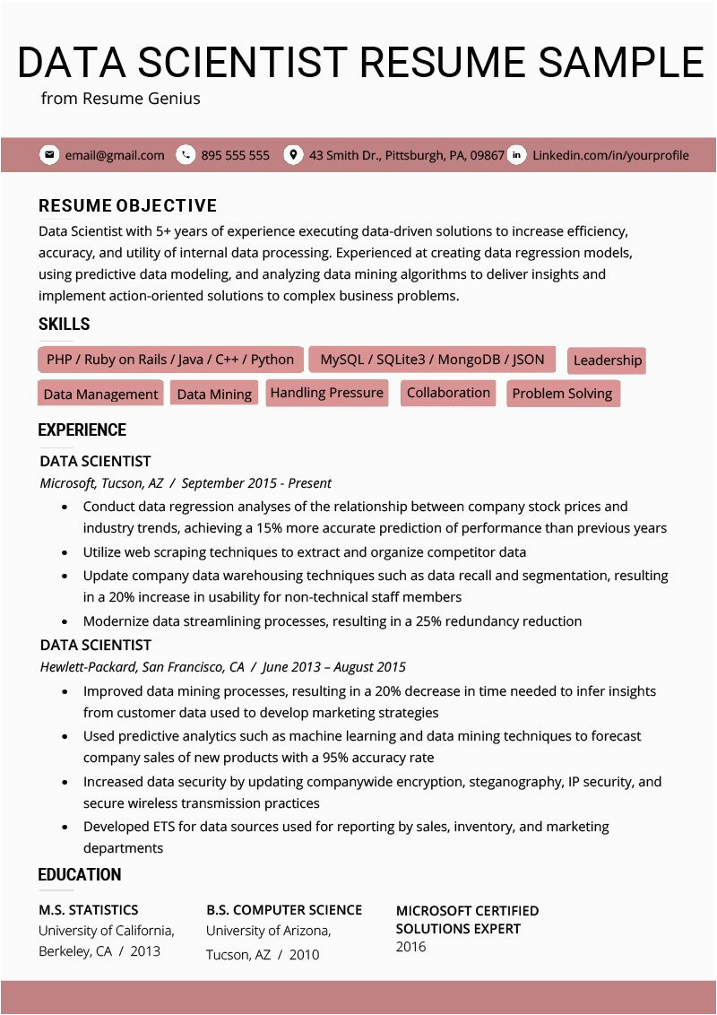 Data Science Resume Sample for Experienced Modern Data Scientist Resume Example In 2020 and all other pictures, designs or photos on our website are copyright of their respective owners. we get our pictures from another websites, search engines and other sources to use as an inspiration for you. please contact us if you think we are infringing copyright of your pictures using contact page. we will be very happy to help you.