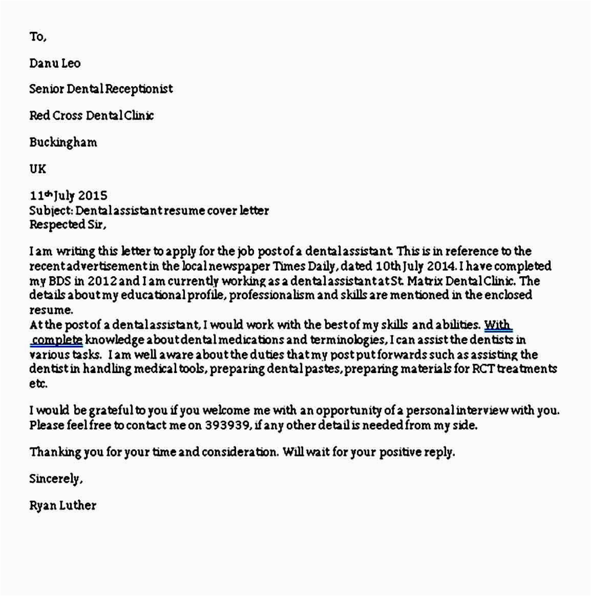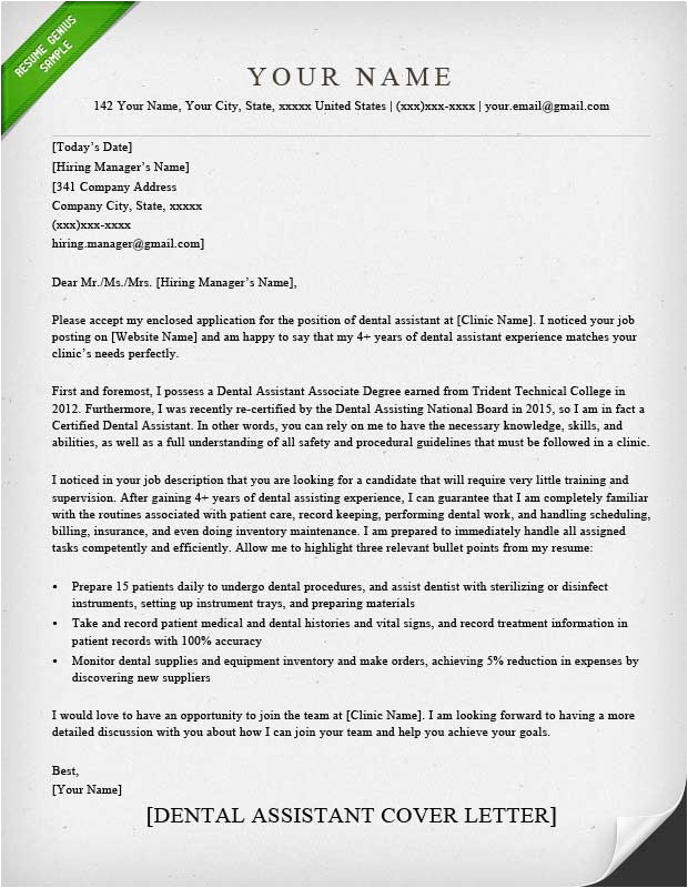 A Brilliant Dental Assistant Cover Letter Example Cover