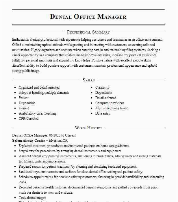 And for all website you come across that has a dental front office manager resume sample, you will locate that there are specialized templates for just more or less any type of resume you wish to create. You can find a dental front office manager resume sample for an entry-level position, and you can locate a template for just nearly any type of job or career you are looking for.