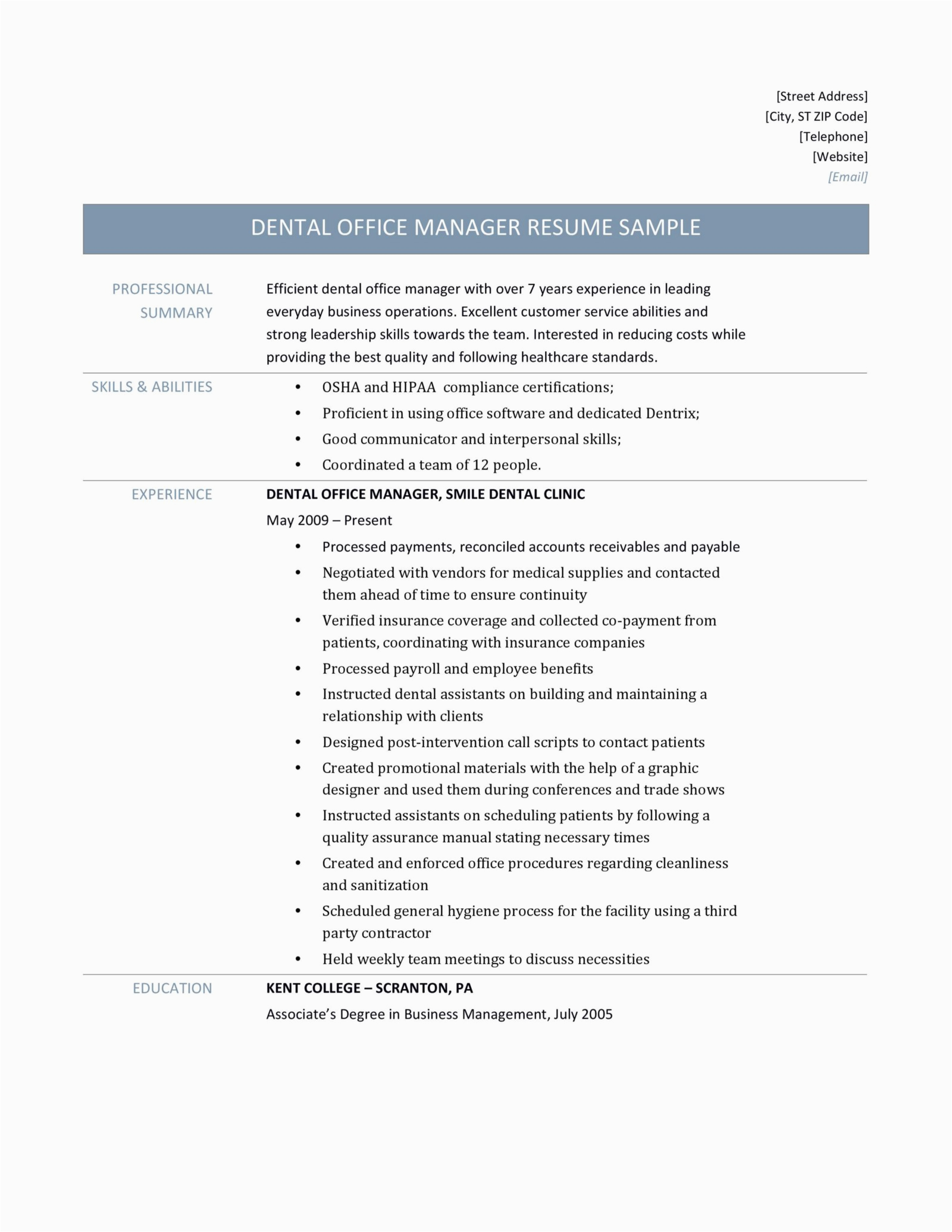 Dental office manager resume example sample template