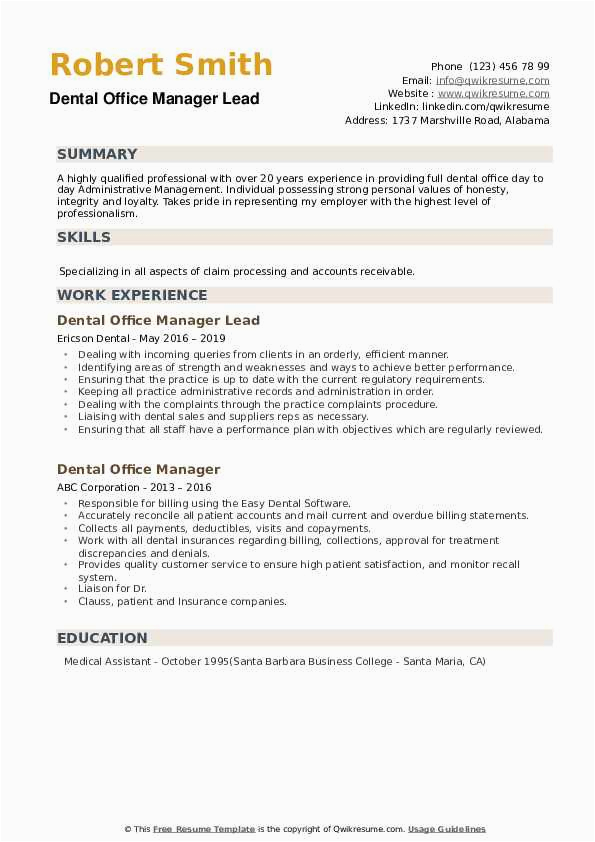 Dental fice Manager Resume Samples – line Resume