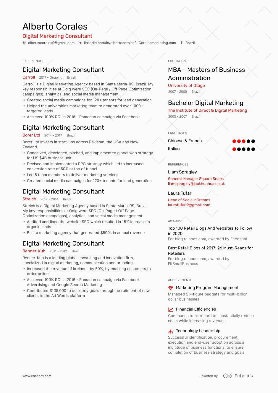 Afterward you are searching for the perfect job, you will of course want to put your best foot forward once an fabulous and well-formatted resume. One way of assuring that you have such a resume is to download a digital marketing resume sample free download. These templates can find the money for you gone the truthful resume you are looking for or clearly use them as a lead to make your own.