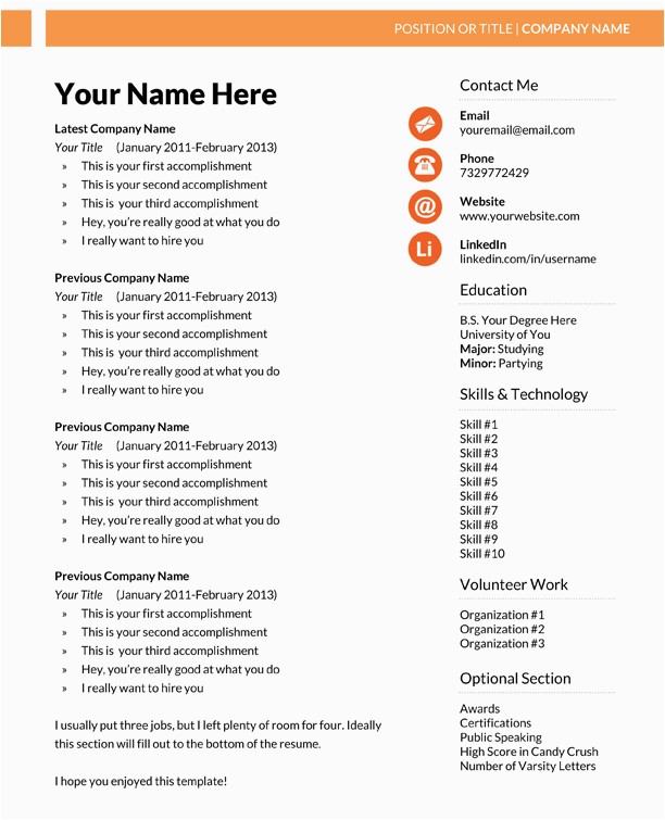 A template can put up to you afterward making positive that all of the suggestion that a prospective employer expects to see will be there, and will be placed where it should be. Obviously your accomplishment archives is a cornerstone of any well-written resume. total ten to fifteen years’ worth of employment history, if you have it, and complete consequently in reverse chronological order. Then, list your school degrees.