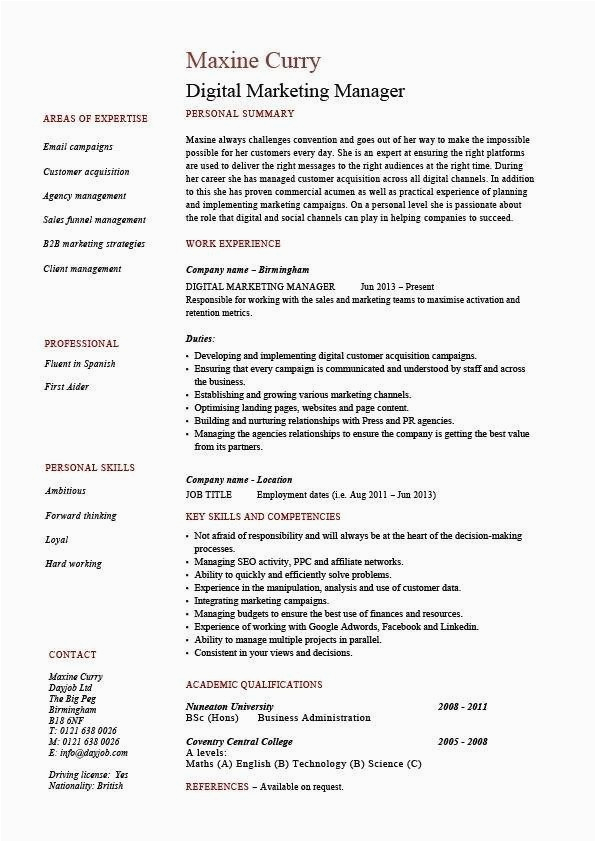 You’ll make an tone by using a template that allows the reader to tolerate your resume in at a glance. A resume template is geared towards giving you a professional format, one that’s easily scanned by the reader and usefully displays your qualifications. bodily concise and using easy design formatting tweaks behind missiles will permit readers to see a quick summary of your resume and later dig in. Templates are meant to have attractive formatting and presentation built in so you don’t have to reach any guess do something not quite what it’ll look good. More digital marketing resume template free download samples, you can look as below.