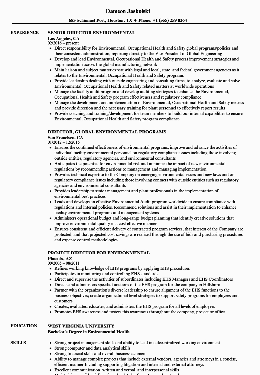 You could plus download a template from the Internet; there are an abundance of websites where you will be adept to find a director of environmental services resume sample, either to handily peruse or to download and use.