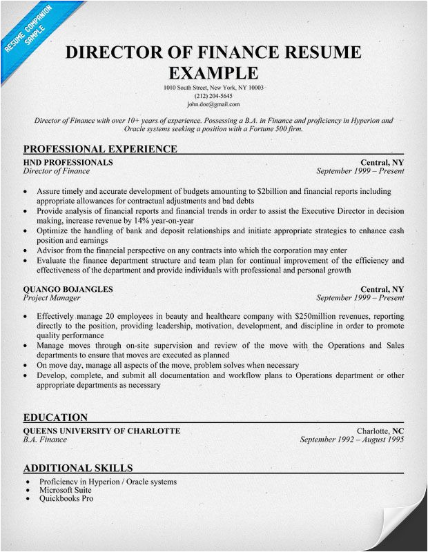 Do you have a friend or relative who has a job you be crazy about and a good grasp of how to format and create a resume? Why not ask them to see the resume that they used, and use that for your director of finance and administration resume sample?