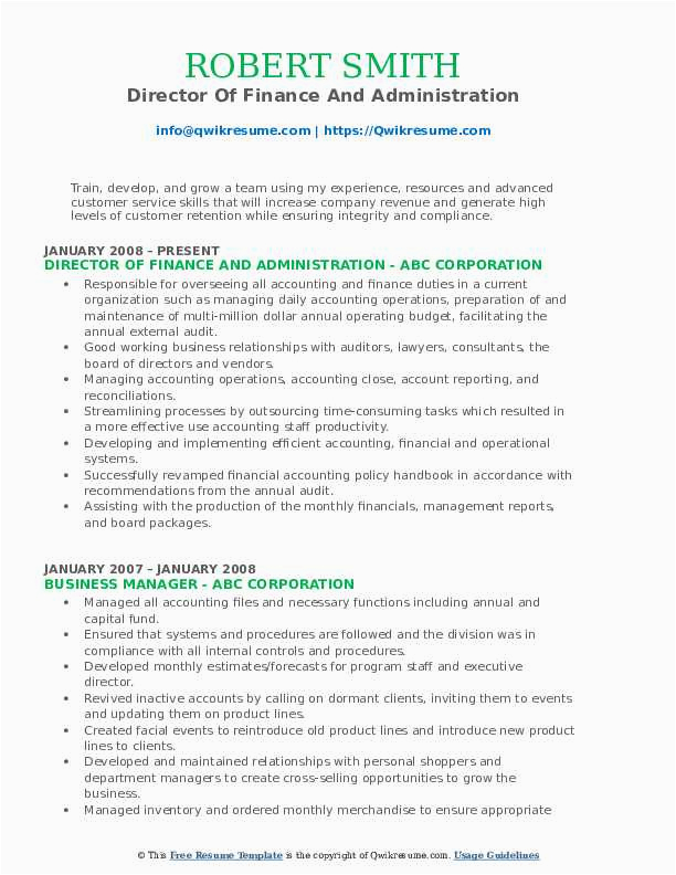 There are as a result many options for you as you search for the perfect director of finance and administration resume sample, and gone some difficult play a part and perseverance on your part, you will locate yourself gone a first-class resume in no time, and hopefully, a first-class employer, as well!. For more instruction upon resumes or for a director of finance and administration resume sample checkout this recommended websites.