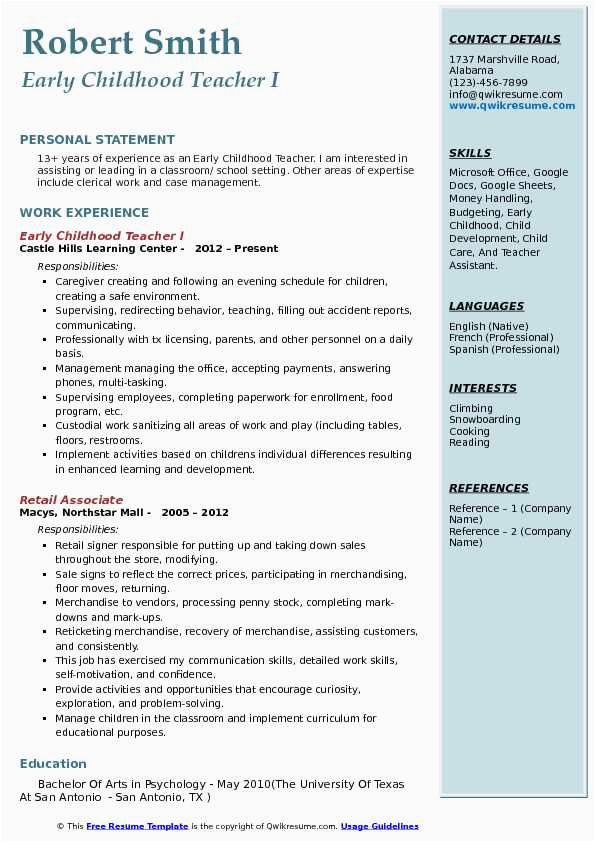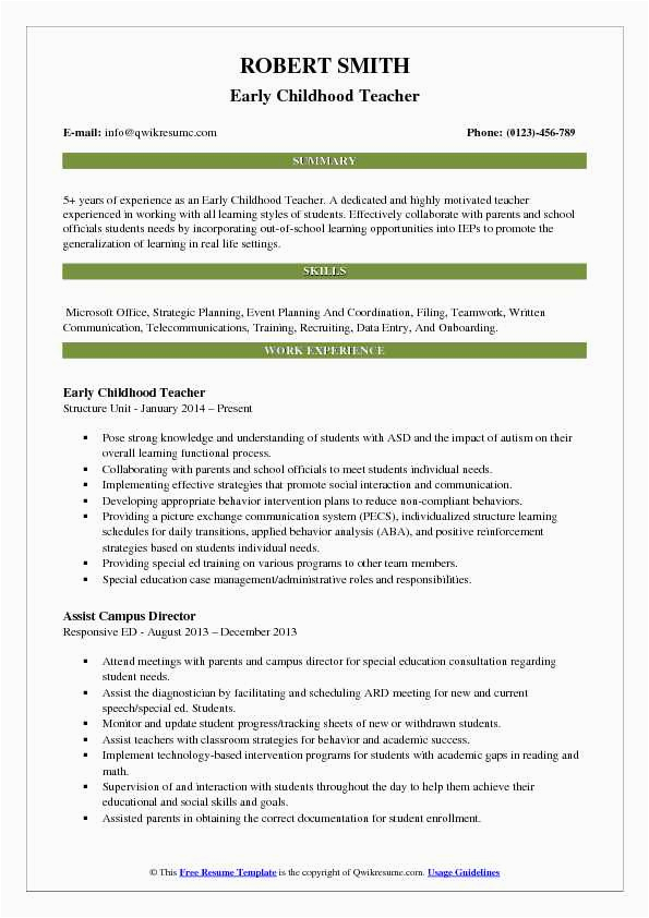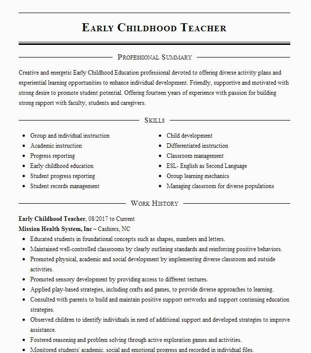 9 photos of the Early Childhood Education Teacher Resume Sample