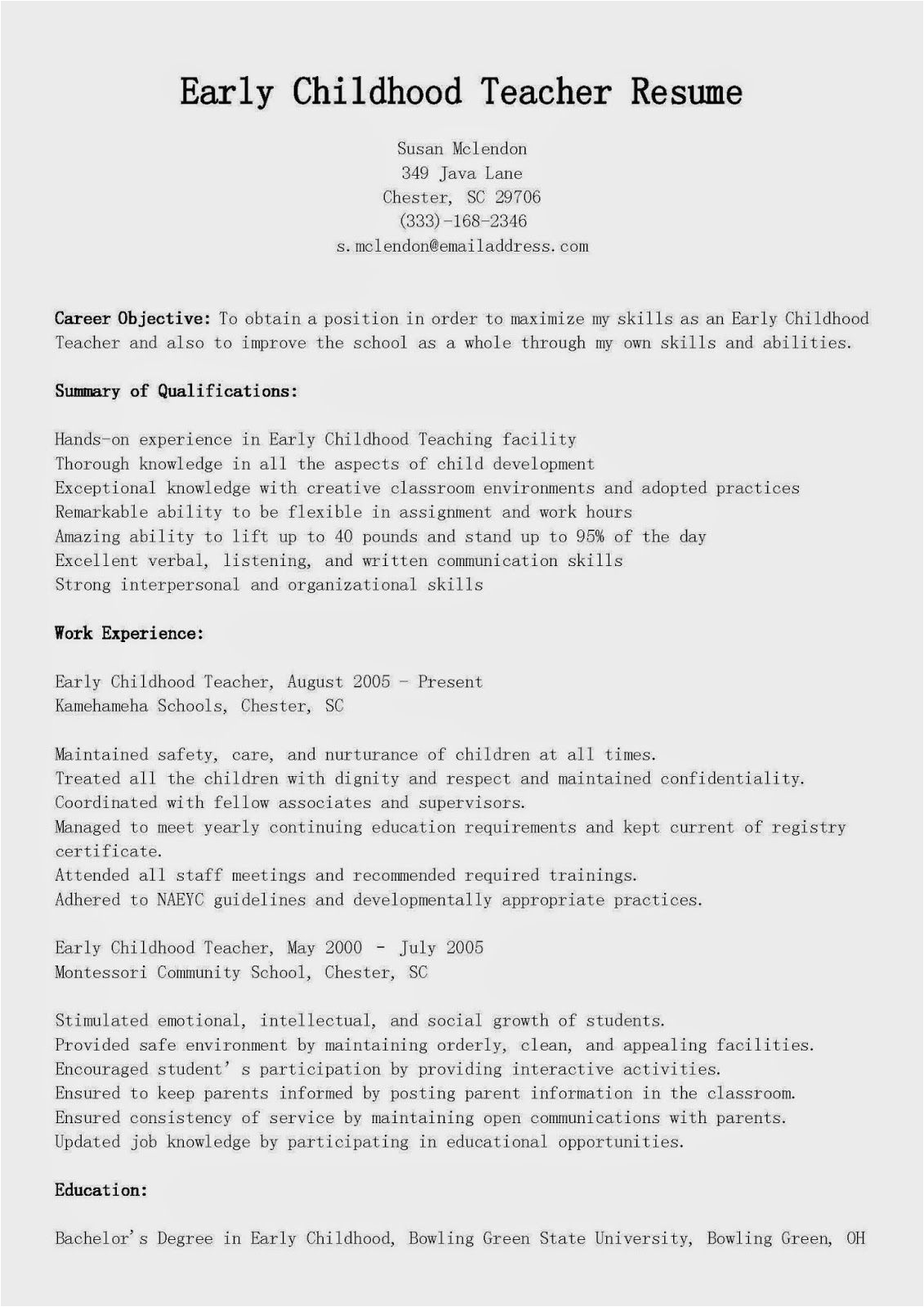 9 photos of the Early Childhood Educator Resume Sample Australia