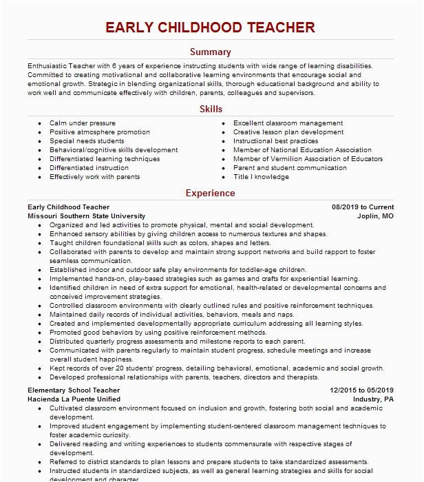 9 photos of the Early Childhood Teacher Resume Objective Sample