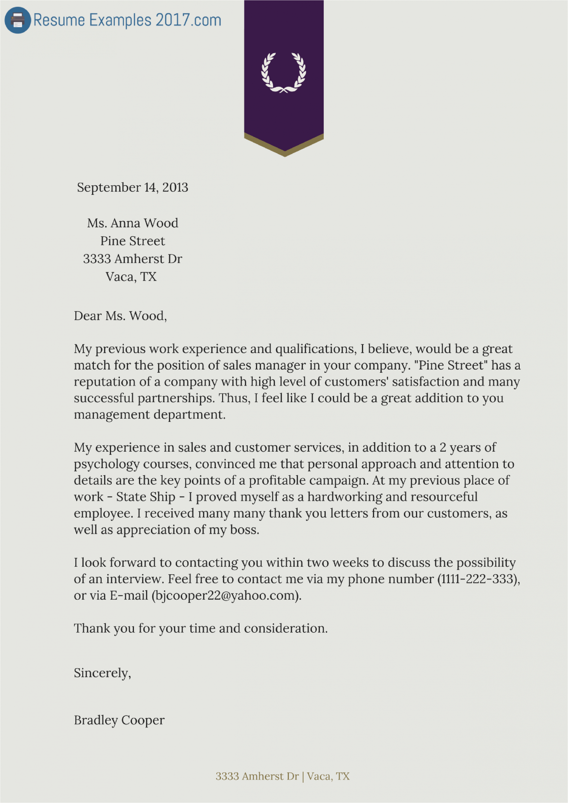 Once you are searching for the perfect job, you will of course want to put your best foot direct later an fabulous and well-formatted resume. One way of assuring that you have such a resume is to download a effective cover letter samples for resume. These templates can come up with the money for you like the precise resume you are looking for or simply use them as a guide to create your own.