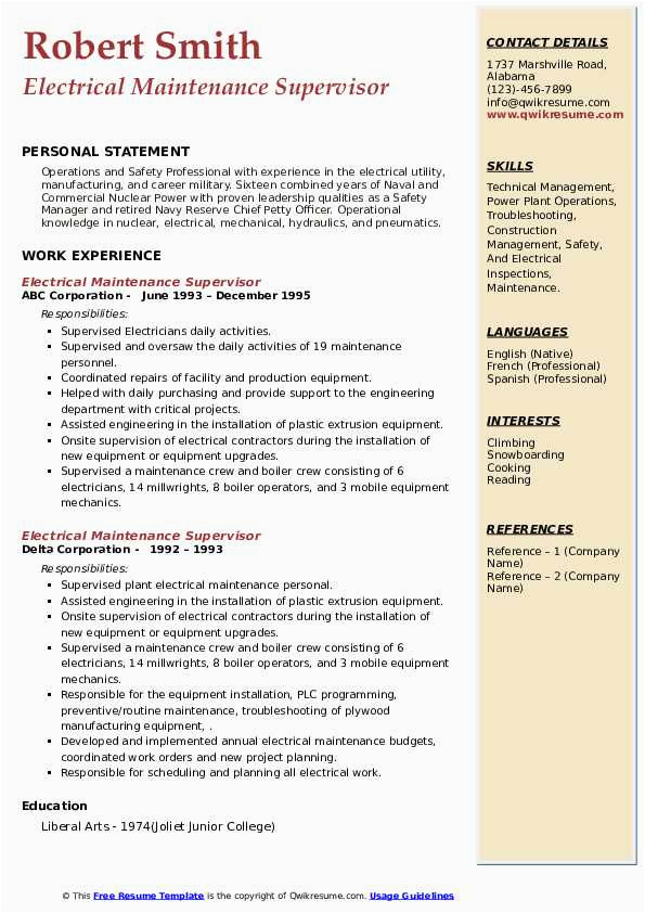 9 photos of the Electrical Installation and Maintenance Resume Sample
