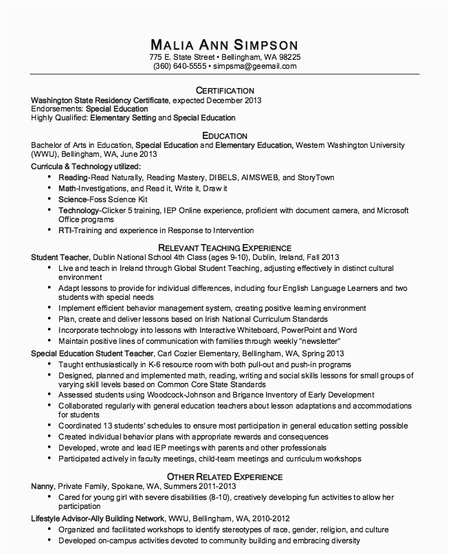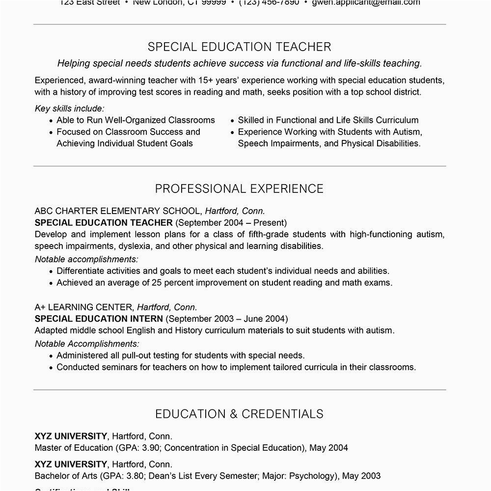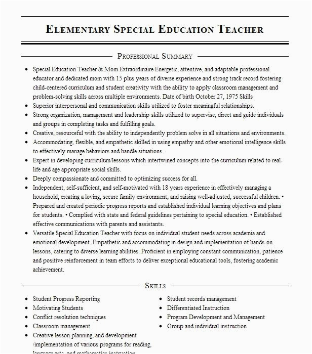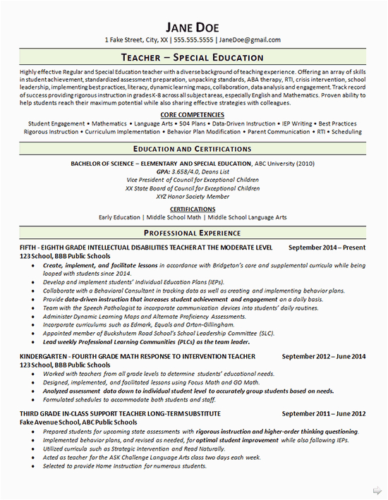9 photos of the Elementary Special Education Teacher Resume Sample