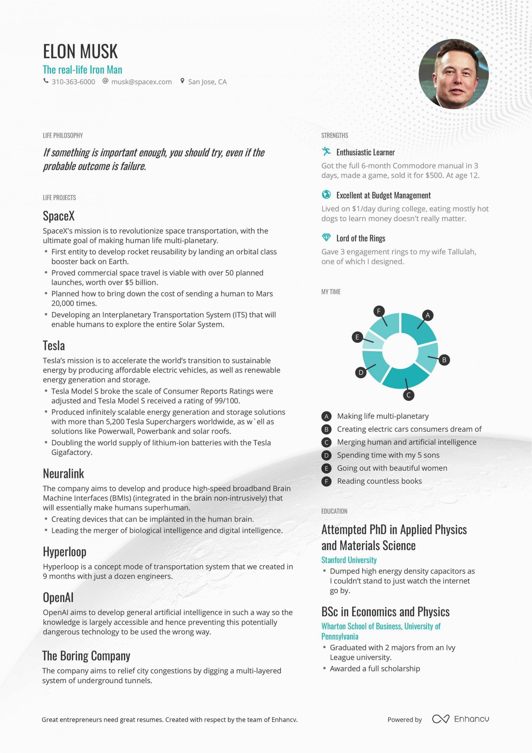 Elon Musk Resume Template Luxury Elon Musk Cv format in