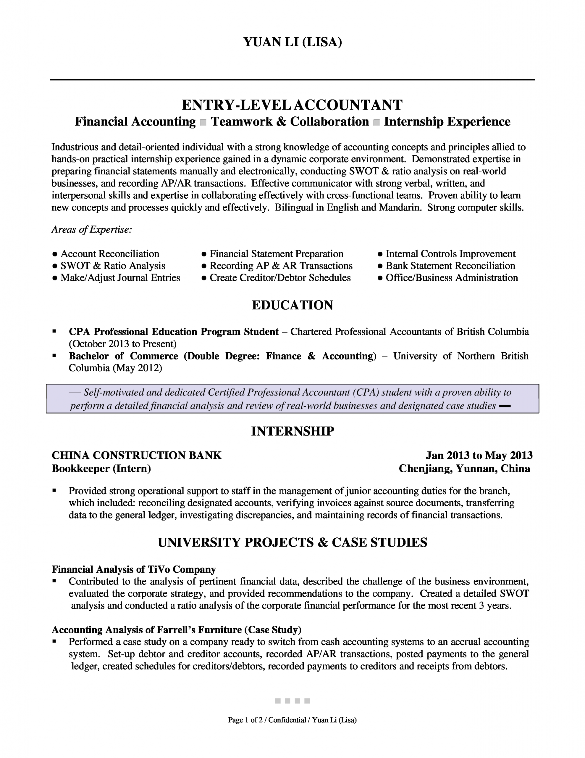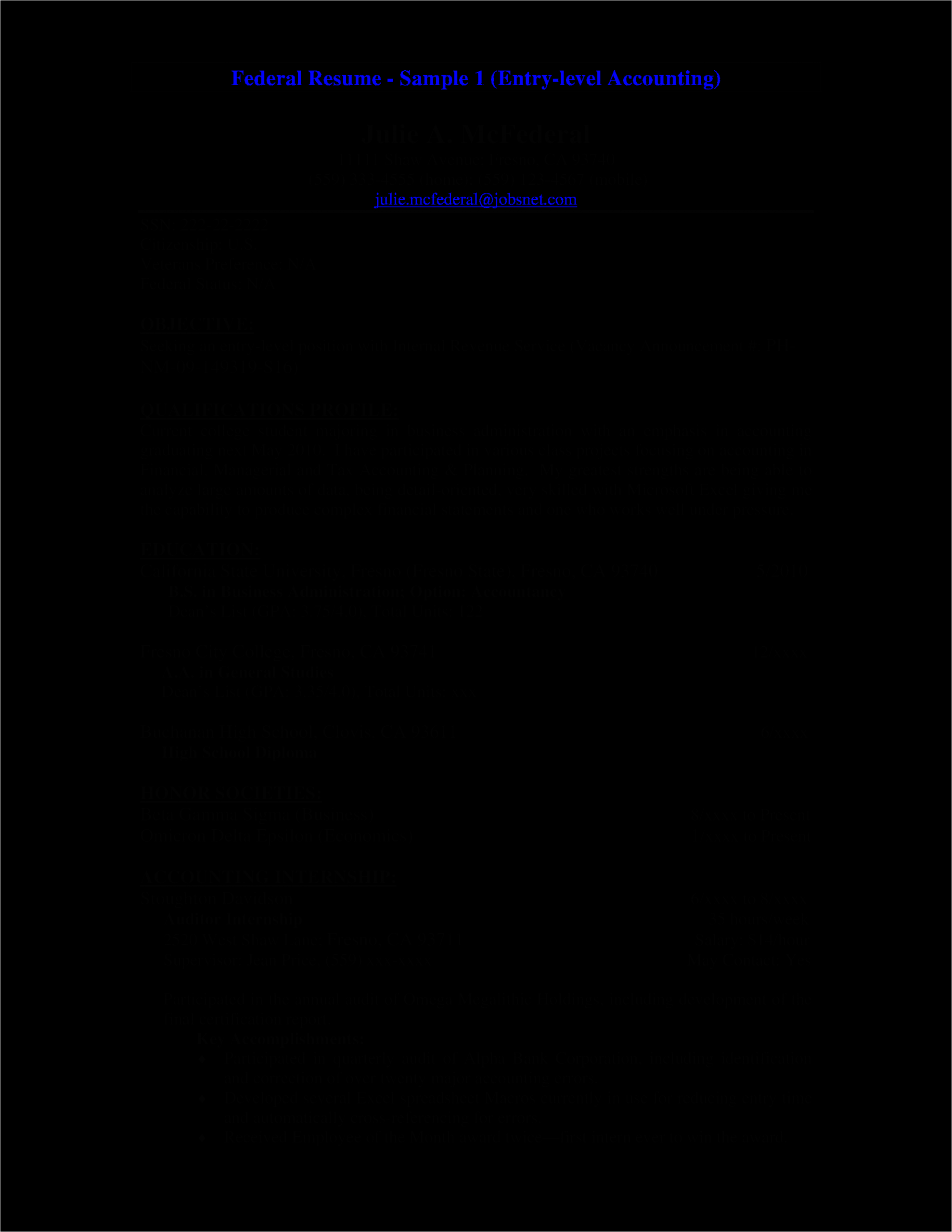 Bearing in mind you are searching for the perfect job, you will of course desire to put your best foot refer taking into account an fabulous and well-formatted resume. One habit of assuring that you have such a resume is to download a entry level accounting jobs resume sample. These templates can present you considering the truthful resume you are looking for or clearly use them as a guide to create your own.