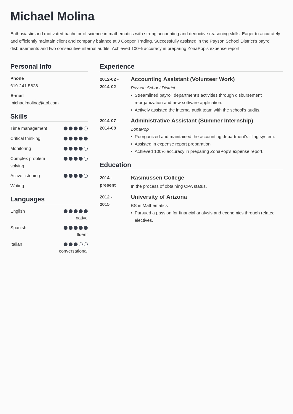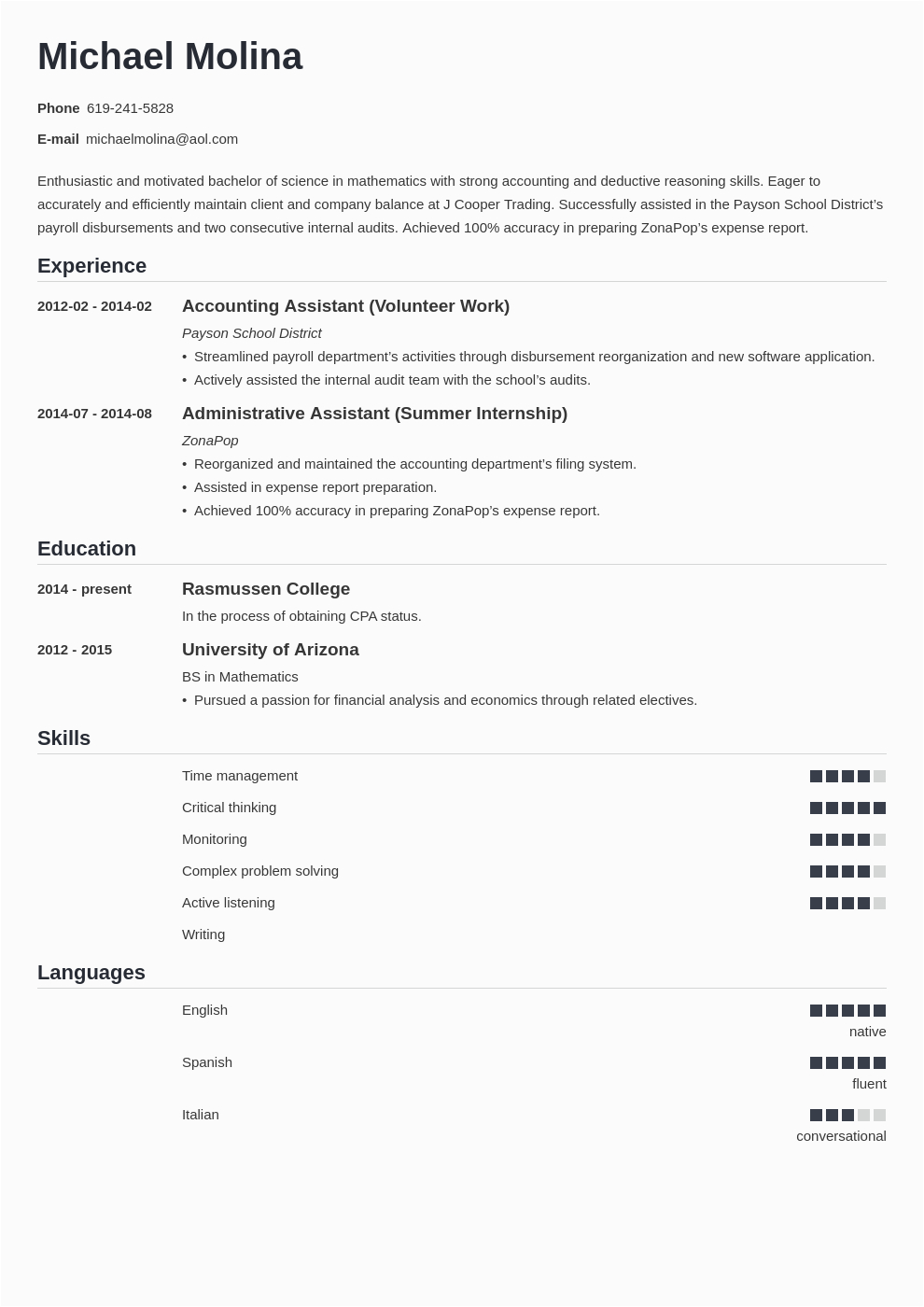 You could moreover download a template from the Internet; there are an abundance of websites where you will be able to find a entry level accounting jobs resume sample, either to handily peruse or to download and use.