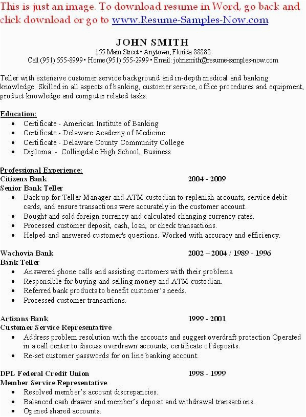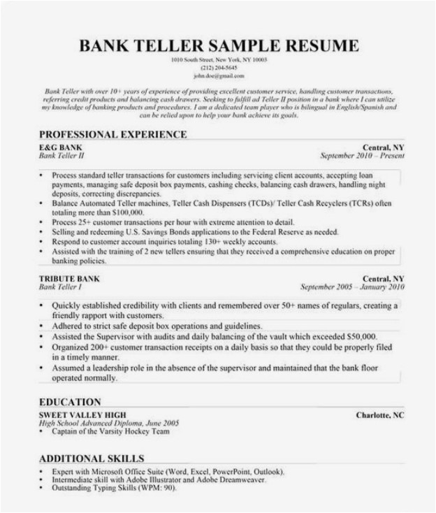 in imitation of you are searching for the absolute job, you will of course want to put your best foot direct later an fabulous and well-formatted resume. One pretentiousness of assuring that you have such a resume is to download a entry level bank teller resume sample. These templates can come up with the money for you once the exact resume you are looking for or suitably use them as a guide to make your own.