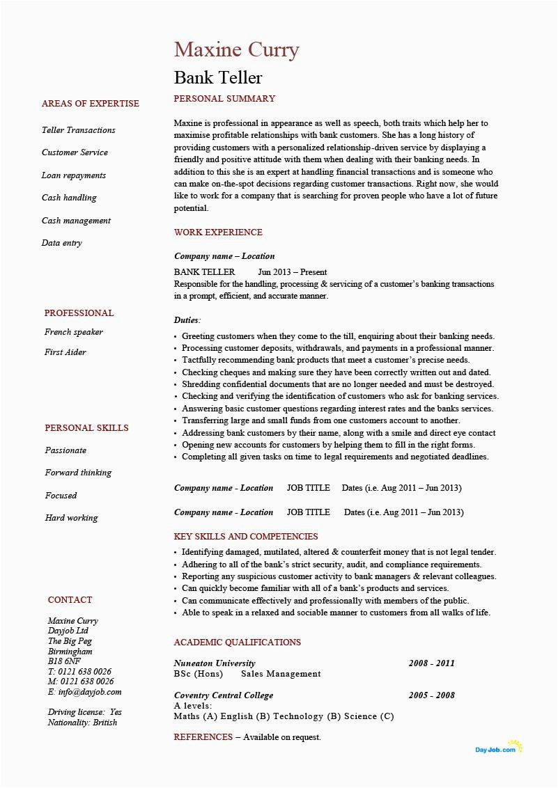 Do you have a pal or relative who has a job you be passionate about and a fine grasp of how to format and make a resume? Why not ask them to see the resume that they used, and use that for your entry level bank teller resume sample?