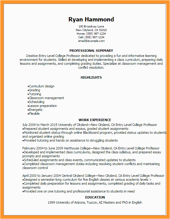 However, if you are a supplementary graduate, you will want to list your instructor achievements at the summit of the page, and next list your employment chronicles and accomplishments.
