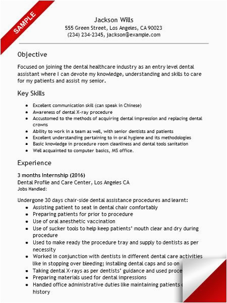 Entry Level Dental assistant Resume Beautiful Entry Level
