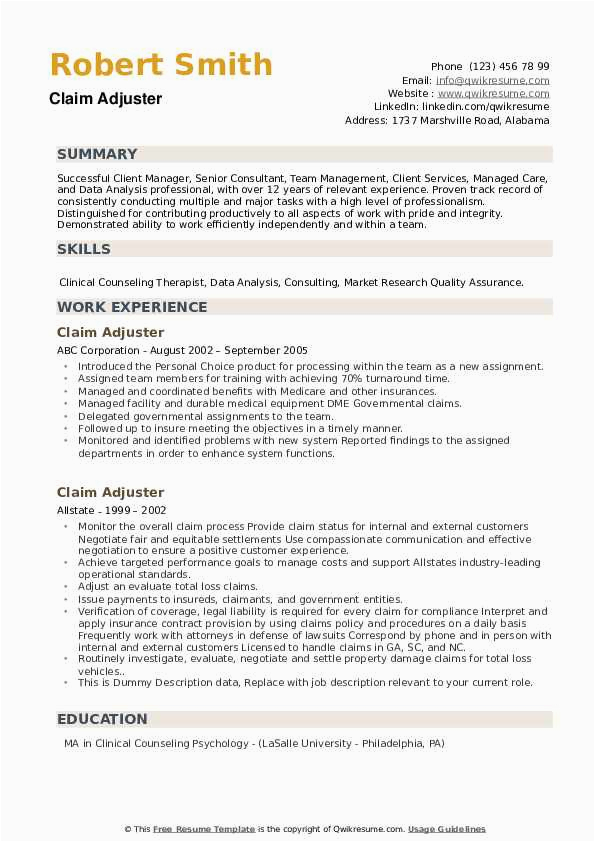 9 photos of the Entry Level Insurance Claims Adjuster Resume Sample