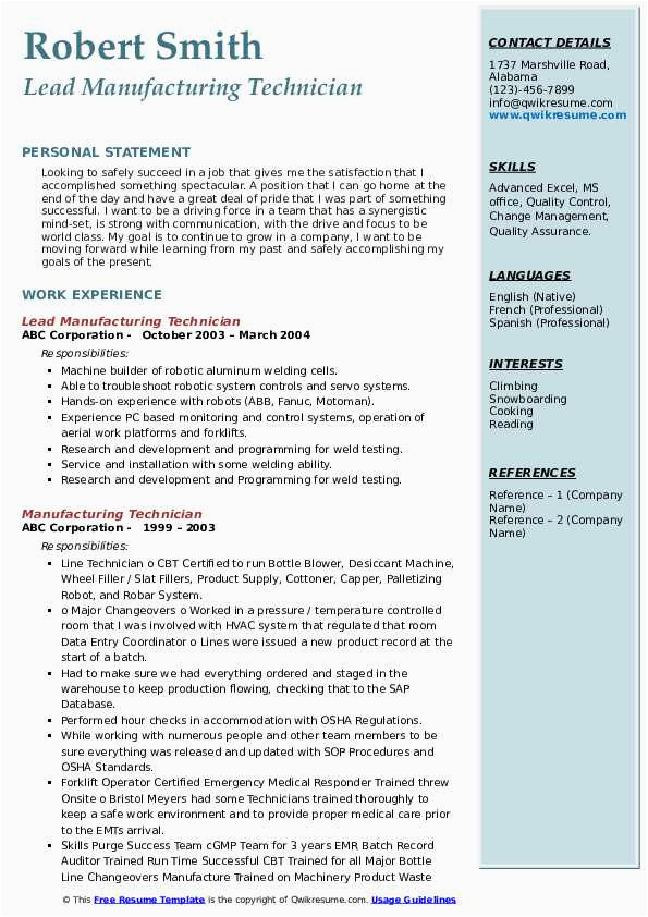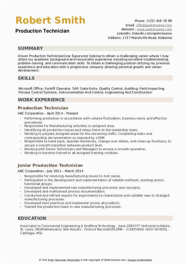 9 photos of the Entry Level Manufacturing Technician Resume Sample