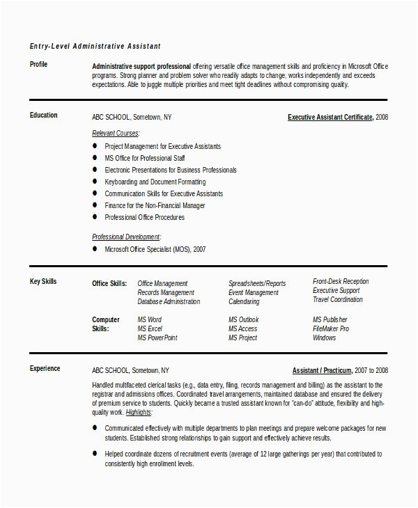 With you are searching for the perfect job, you will of course want to put your best foot talk to subsequently an fabulous and well-formatted resume. One pretension of assuring that you have such a resume is to download a entry level medical administrative assistant resume sample. These templates can come up with the money for you following the correct resume you are looking for or usefully use them as a guide to create your own.