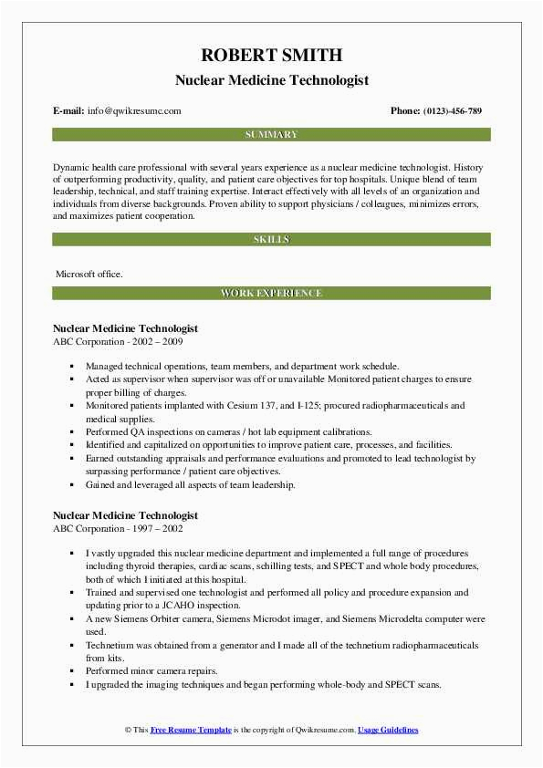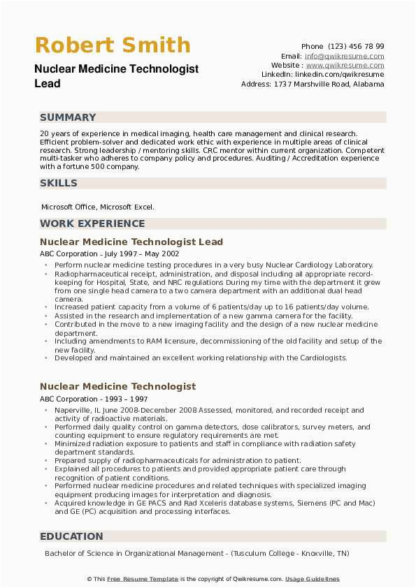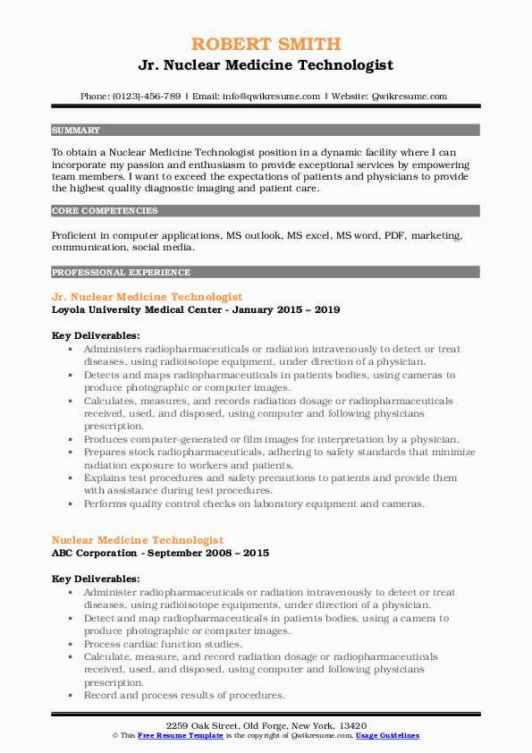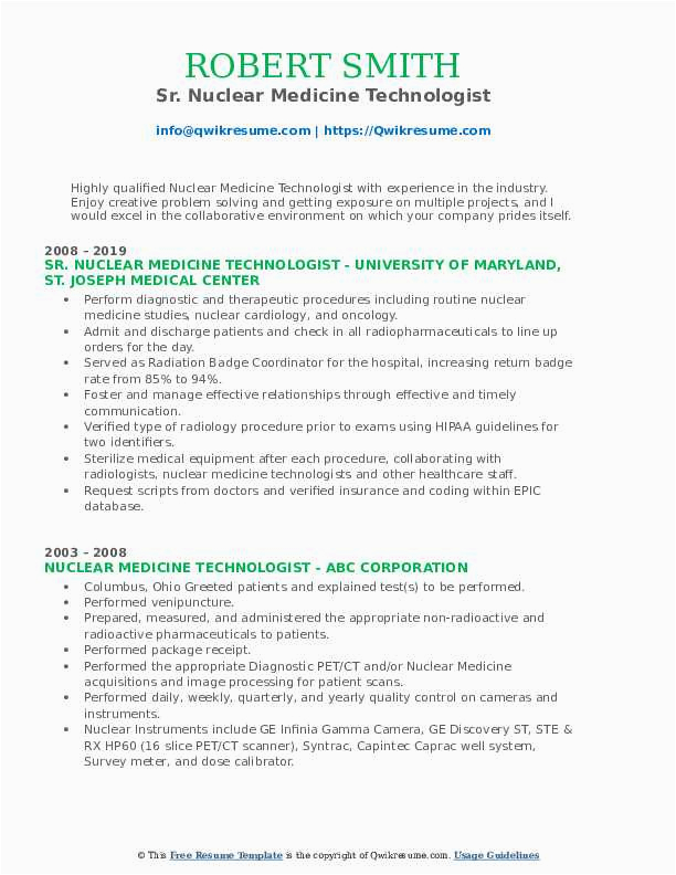 9 photos of the Entry Level Nuclear Medicine Technologist Sample Resume