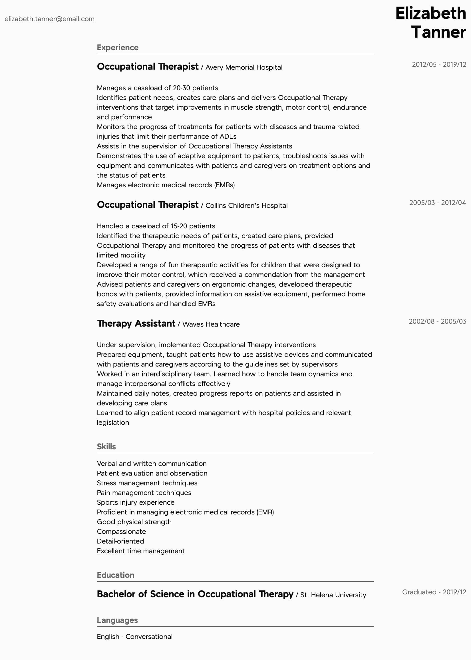 9 photos of the Entry Level Occupational therapy Resume Sample