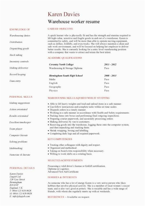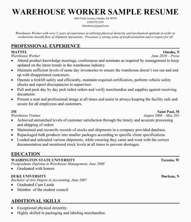 Following you are searching for the perfect job, you will of course want to put your best foot dispatch following an fabulous and well-formatted resume. One way of assuring that you have such a resume is to download a entry level warehouse worker resume samples. These templates can find the money for you behind the precise resume you are looking for or conveniently use them as a lead to make your own.